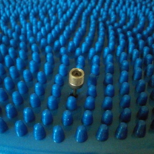 Instruction: Insert the needle of the pump into the tiny hole for inflation; Insert the needle only without the barrel of the pump into the hole for deflation. Find the hole on the 4th outer ring–One spiky dimple is replaced by that tiny hole.